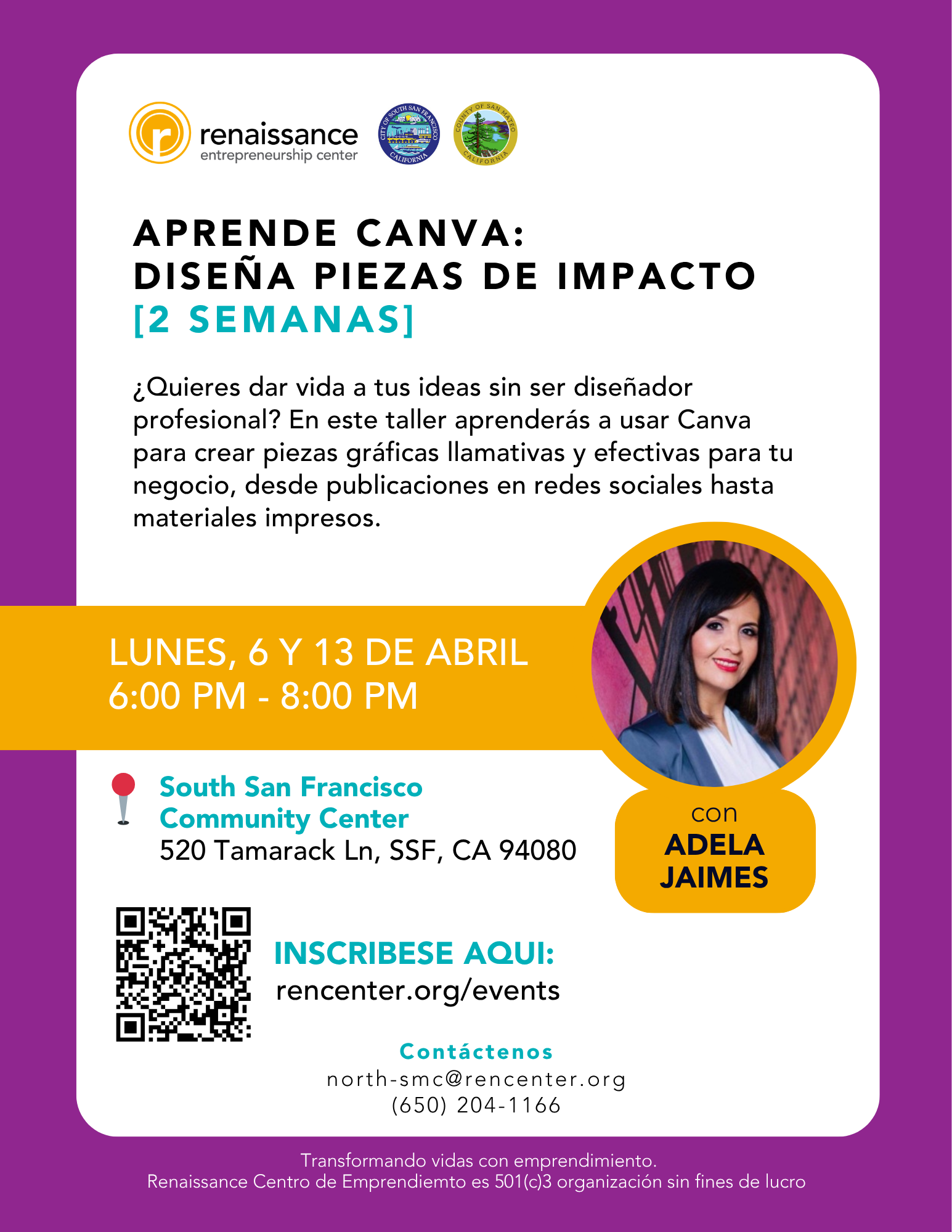 Sobre este Evento con Adela Jaimes Fechas: 6 y 13 de abril EN PERSONA South San Francisco Community Center 520 […]