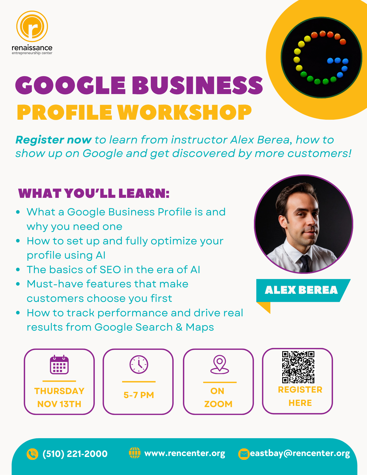 Register now to learn from instructor Alex Berea, how to show up on Google and get discovered by more customers! […]